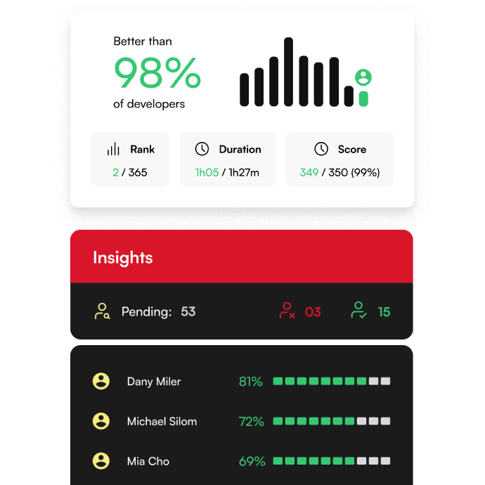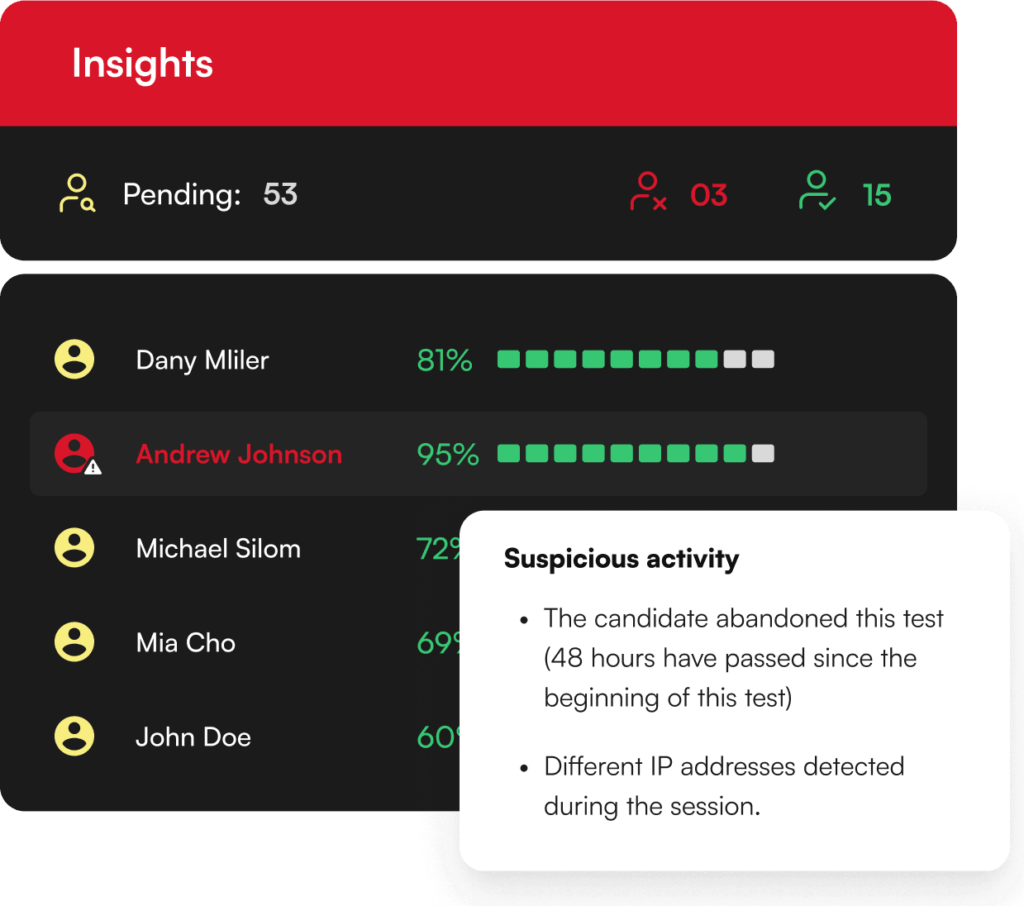 - Integrity Tests that adapt, monitor activity, and verify decisions help filter out shortcuts and highlight true technical skills.