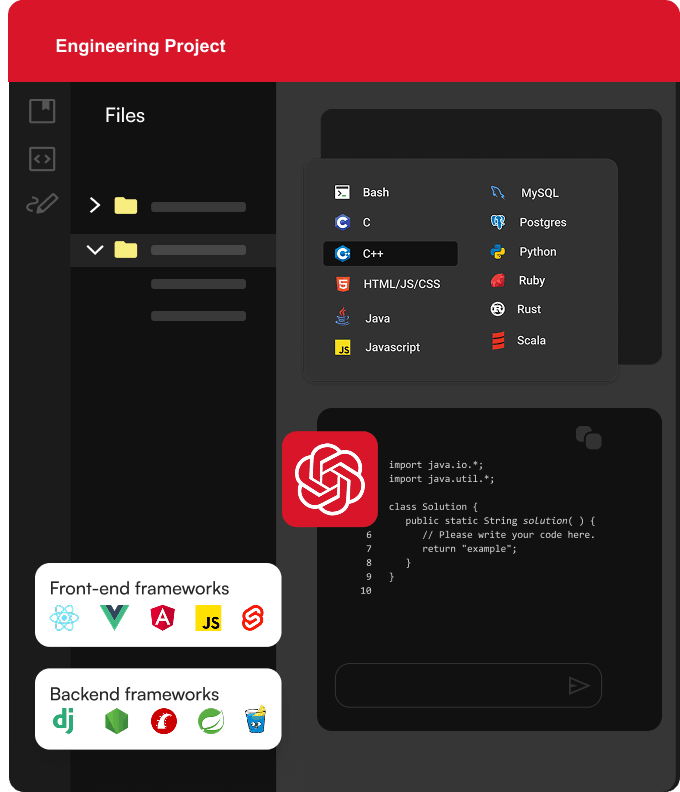 - AI-Enabled tools Candidates use AI in context, you can review prompt history, outputs, and code edits to see how they think, validate, and ship.