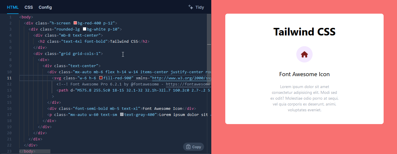 Font Awesome also gives you the option of copying the icon’s SVG code. You can then add Tailwind’s utility classes to the SVG to style it to your taste.