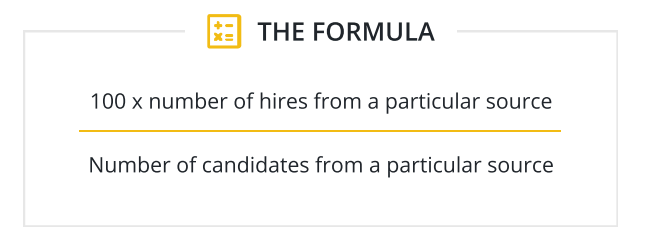 (100 x Number of hires from a particular source) / Number of candidates from a particular source