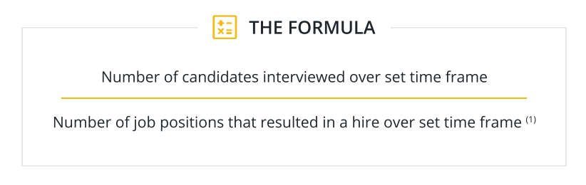 Number of candidates interviewed over set time frame / # of job positions that resulted in a hire over set time frame