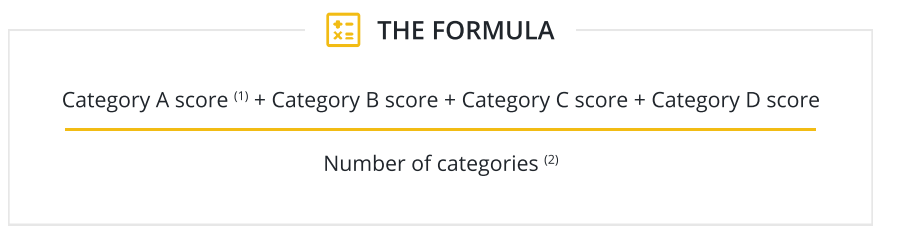Category A score* + Category B score + Category C score + Category D score / Number of categories*