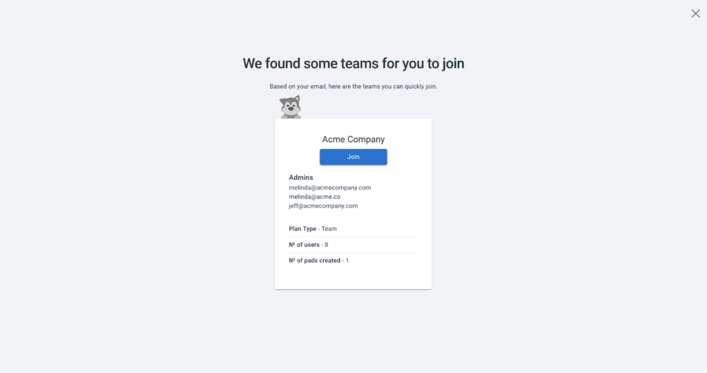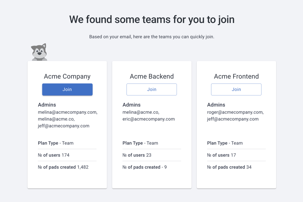 As an account admin you have the ability to let newly registered interviewers join your team. That means, when an interviewer attempts to create a new CoderPad account, we’ll detect their email domain (the part after the @ symbol) and show them the teams they are eligible to join. If they click “Join”, they’ll automatically be added. No extra steps, no hassles, just ready to interview.
