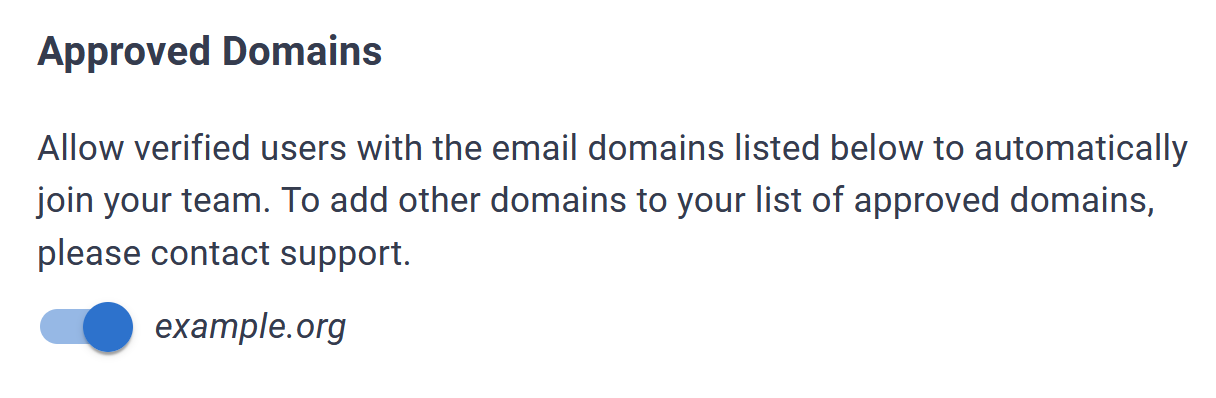 By default, your account is pre-populated with the domain names from the individuals who are listed as admins on your account. As an account admin, you can decide which of the domains you want to approve. This feature is turned-off by default and you can change it anytime.