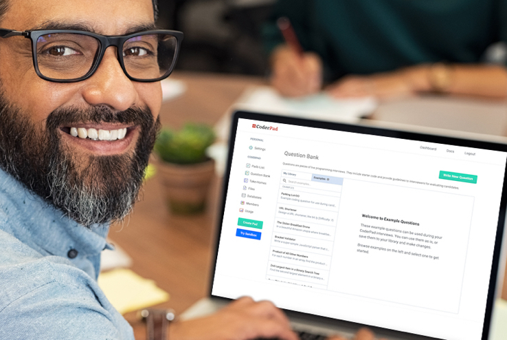 Now you and your team can kick-start preparation for technical interviews with CoderPad’s Example Questions – featuring over 40 proven questions in 10 of the most commonly used programming languages.