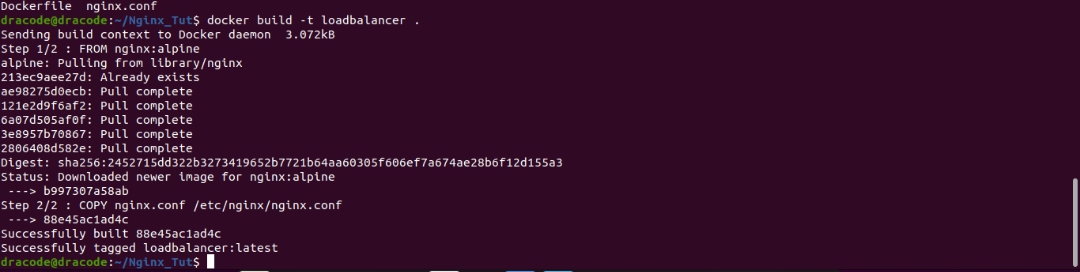 loadBalancer image is built with the docker command docker build -t loadbalancer .Run the Nginx container from the Docker image we just built: