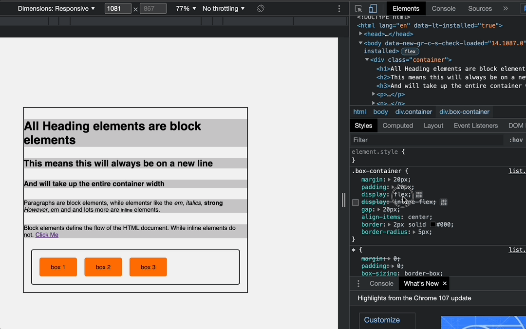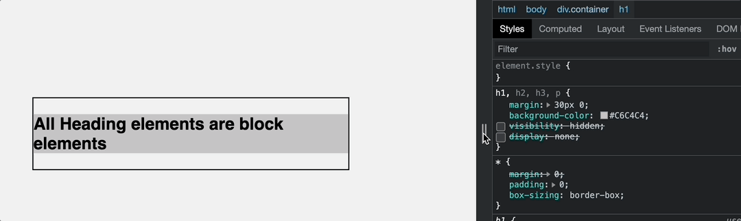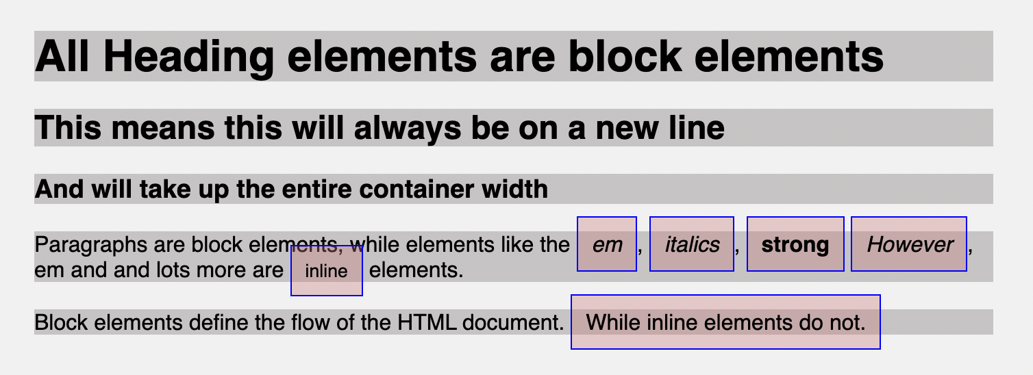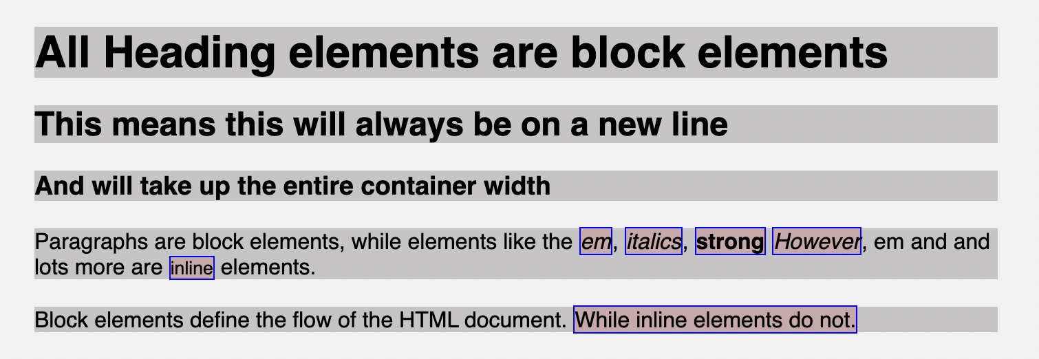 This is essential to make you aware of some behavior certain elements exhibit when working with them, so you don’t think an element filling up the entire width of your container is a bug when you want it to only take up the width of its content.