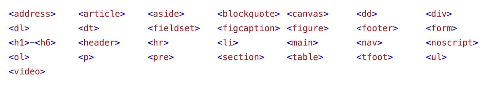 Block elements define the flow of the HTML document.