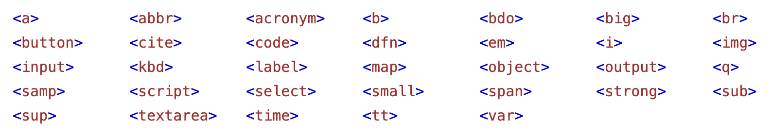 Below are examples of inline elements for reference purposes: