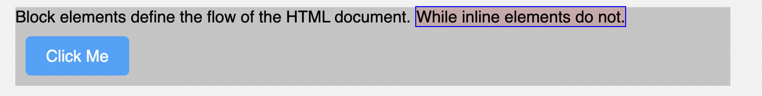 For example, if I add a background-color property to each inline element in the HTML example, you will notice that these inline elements stick within other elements. They’re not for determining layout; they’re only used within block elements for styling.