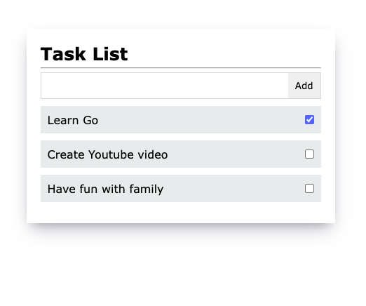 Now, go ahead and add some tasks to the application, and you should see a similar output to the one on the screenshot below, depending on the tasks you’ve created.