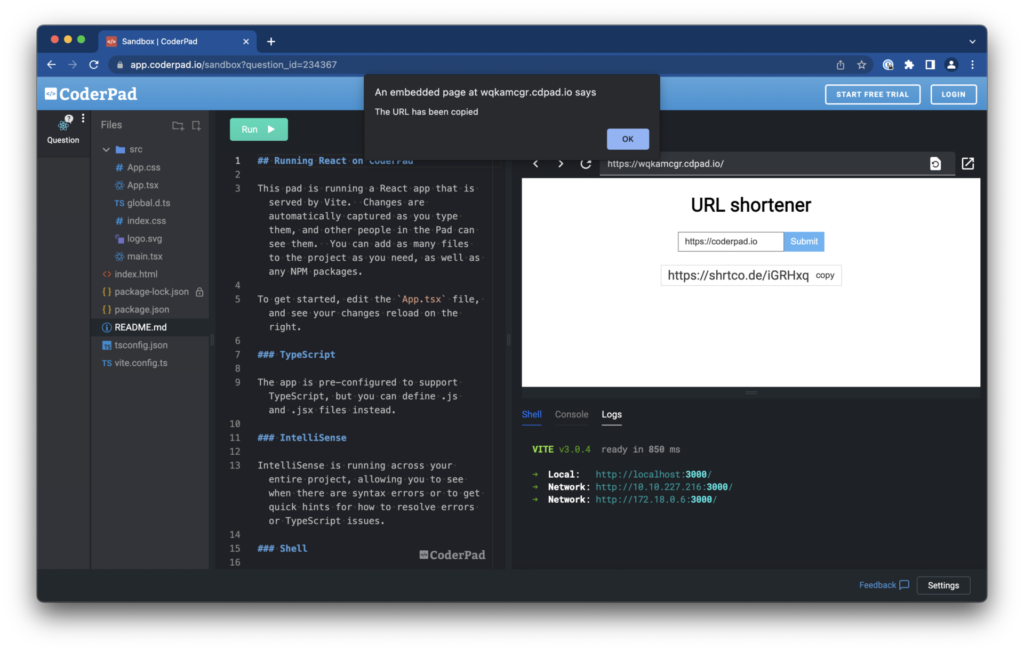 💡 CoderPad sandboxes gives you the native code editor experience when building applications and conducting interviews.