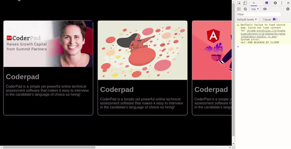 </p></div></div><divclass="card"><imgsrc="https://encrypted-tbn0.gstatic.com/images?q=tbn:ANd9GcR-jt3d-_xLuJFSQPmo6Tqepn4_wtLlgb9RHA&usqp=CAU"alt="" /><divclass="card__content"><h1>Coderpad</h1><p>