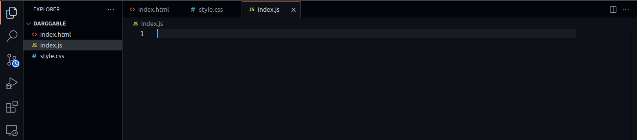 Start by creating a new folder, draggable, and open the folder in your code editor. In your code editor, create three files: index.html, index.js, and style.css: