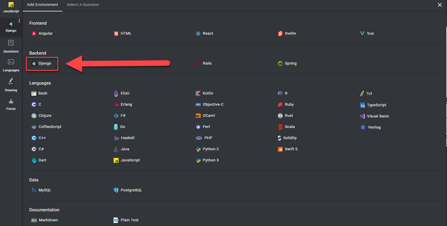 If you want to display a chart or graph using libraries like Matplotlib, you can use a pad with Django selected.