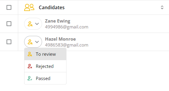 1. Simply click on the status icon of a candidate in the list and select an option from the drop-down menu: