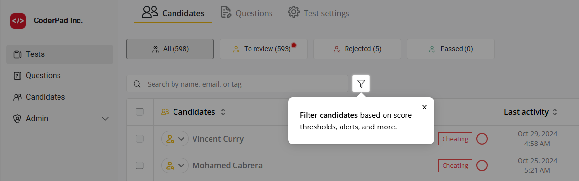 You can also filter candidates based on other criteria by clicking on the filter icon.