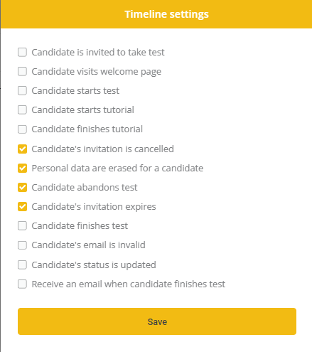 📧 You can also receive an email when the candidate finishes the test by selecting the same checkbox at the bottom of the Timeline settings.