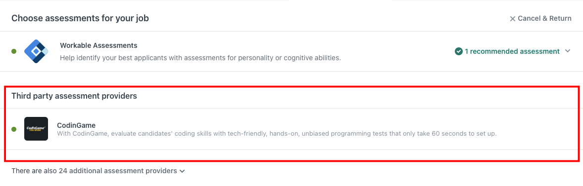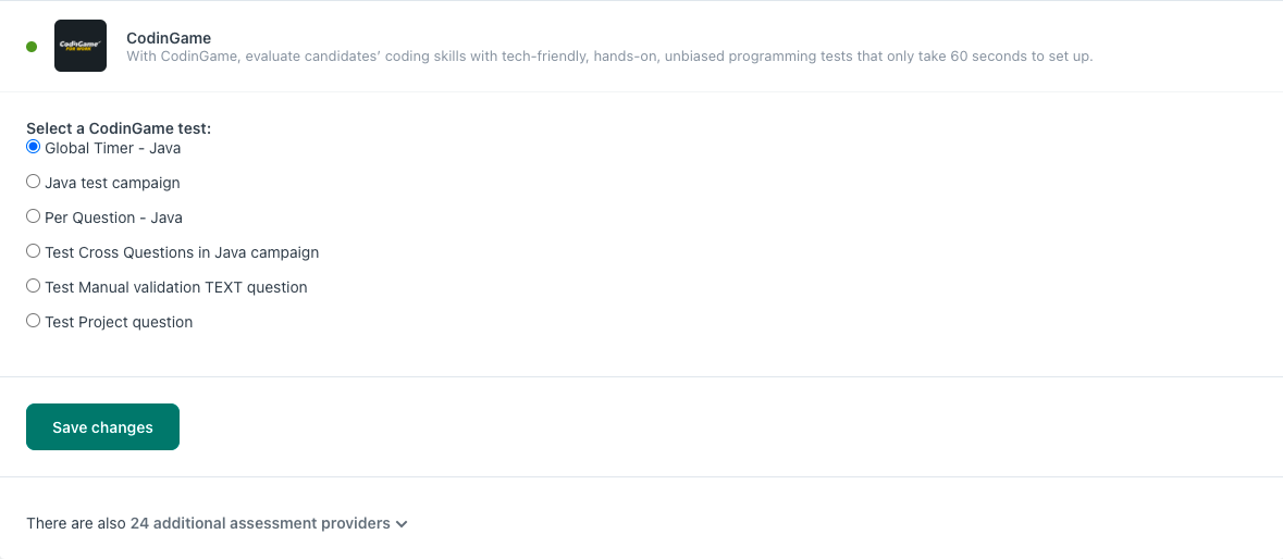 4. Then, select CodinGame from the Assessment providers list.