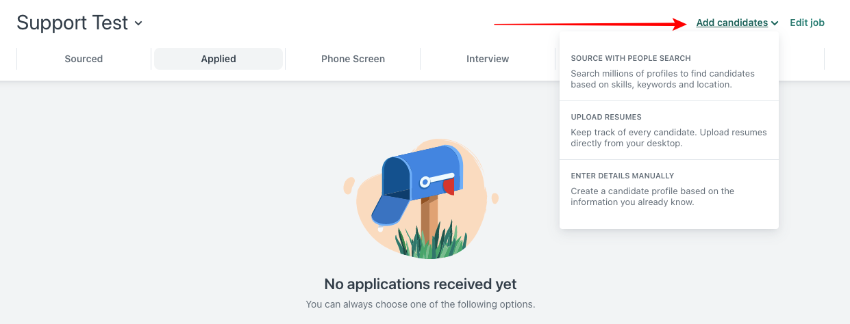 9. Once your offer is ready, you can invite one or more candidates. Simply open your offer and click on Add candidates.