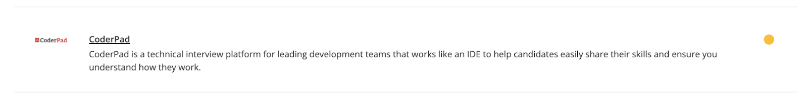 ℹ️ As part of CoderPad’s rebranding effort, CoderPad Live is now just Interview. We’re still working with our integration partners to update the searches, until then you’ll still see references to “CoderPad” or “CoderPad Live” when you search within the partner’s application.