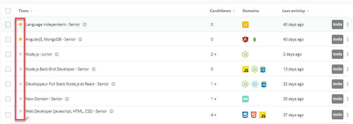 Have a popular test you want to be at the top of your test list? Simply click the star icon (⭐) to the left of the test name and it’ll get moved to the top of your tests list: