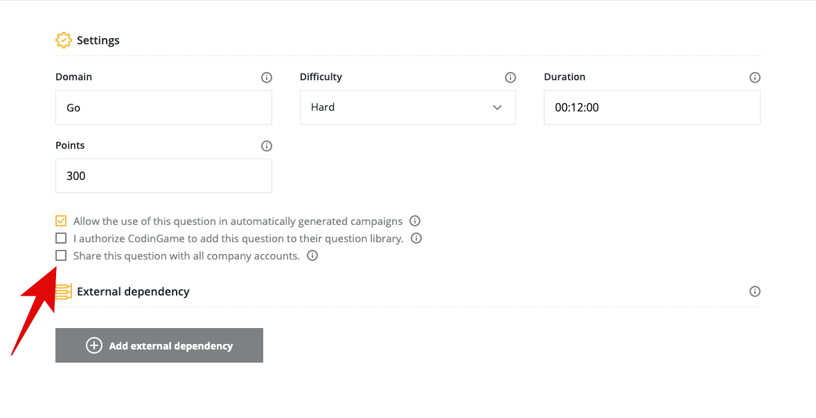 2. Then, from your account, open the question you want to share. In the settings section, you will see a checkbox to tick: