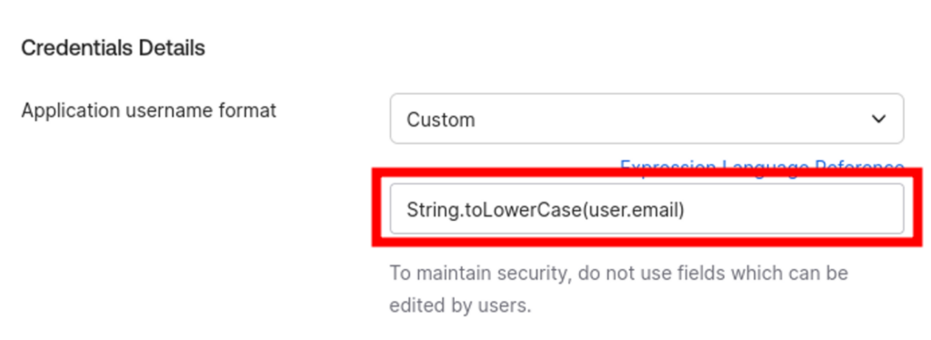 B) If your user email contains any uppercases letters, CoderPad won’t be able to match the user and will result in a login error. Therefore, you have to change the Application username format to Custom, and in the value use String.toLowerCase(user.email).