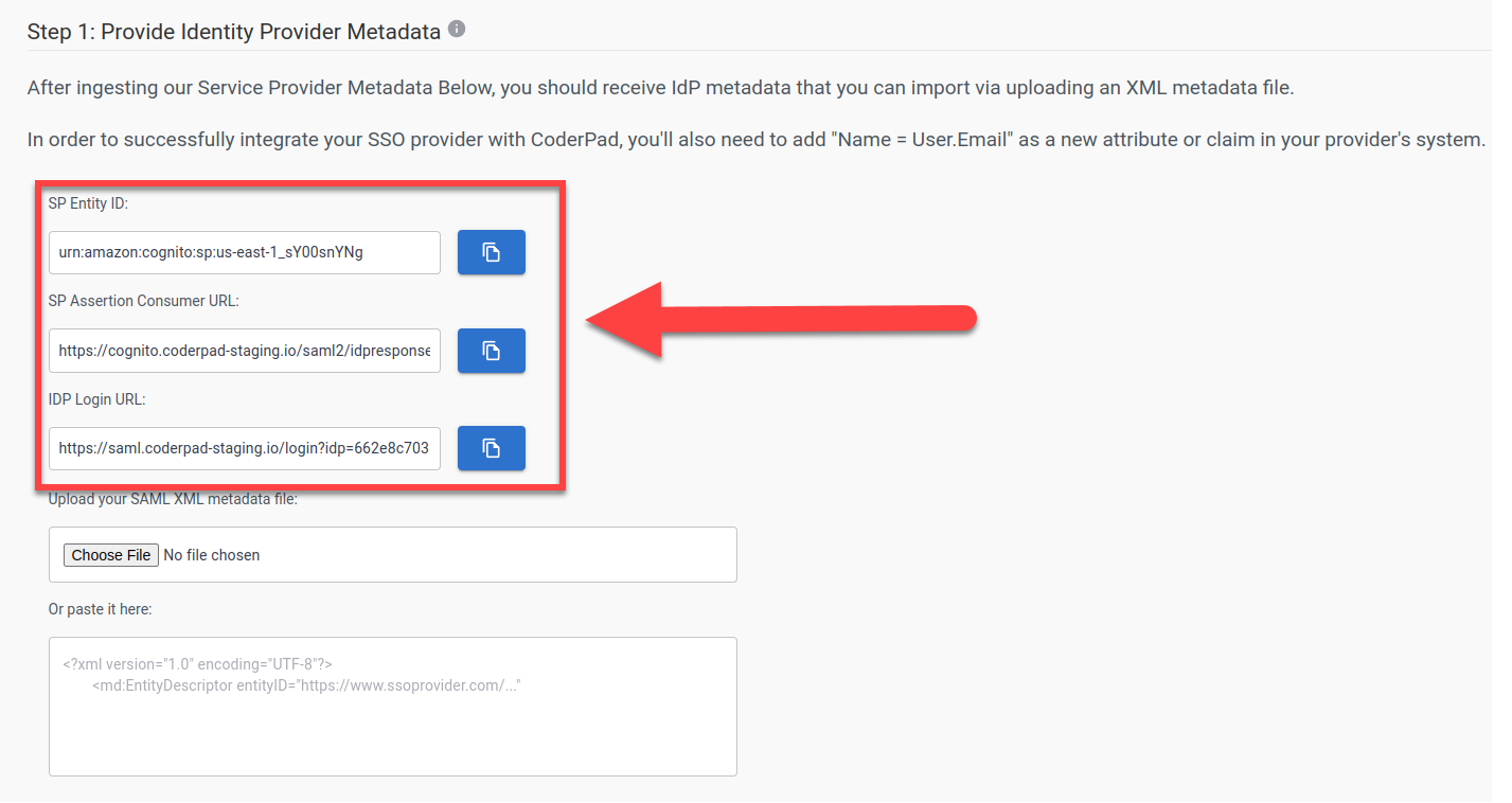 8. Paste the contents into CoderPad’s SSO configuration page.