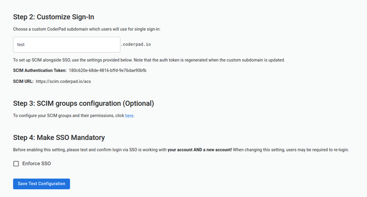 9. You can use a custom CoderPad subdomain to test your SSO configuration.