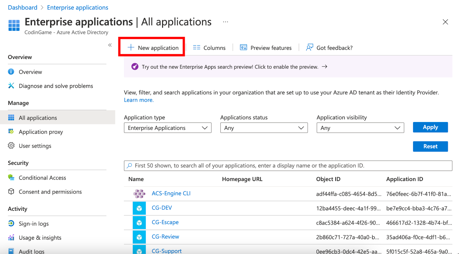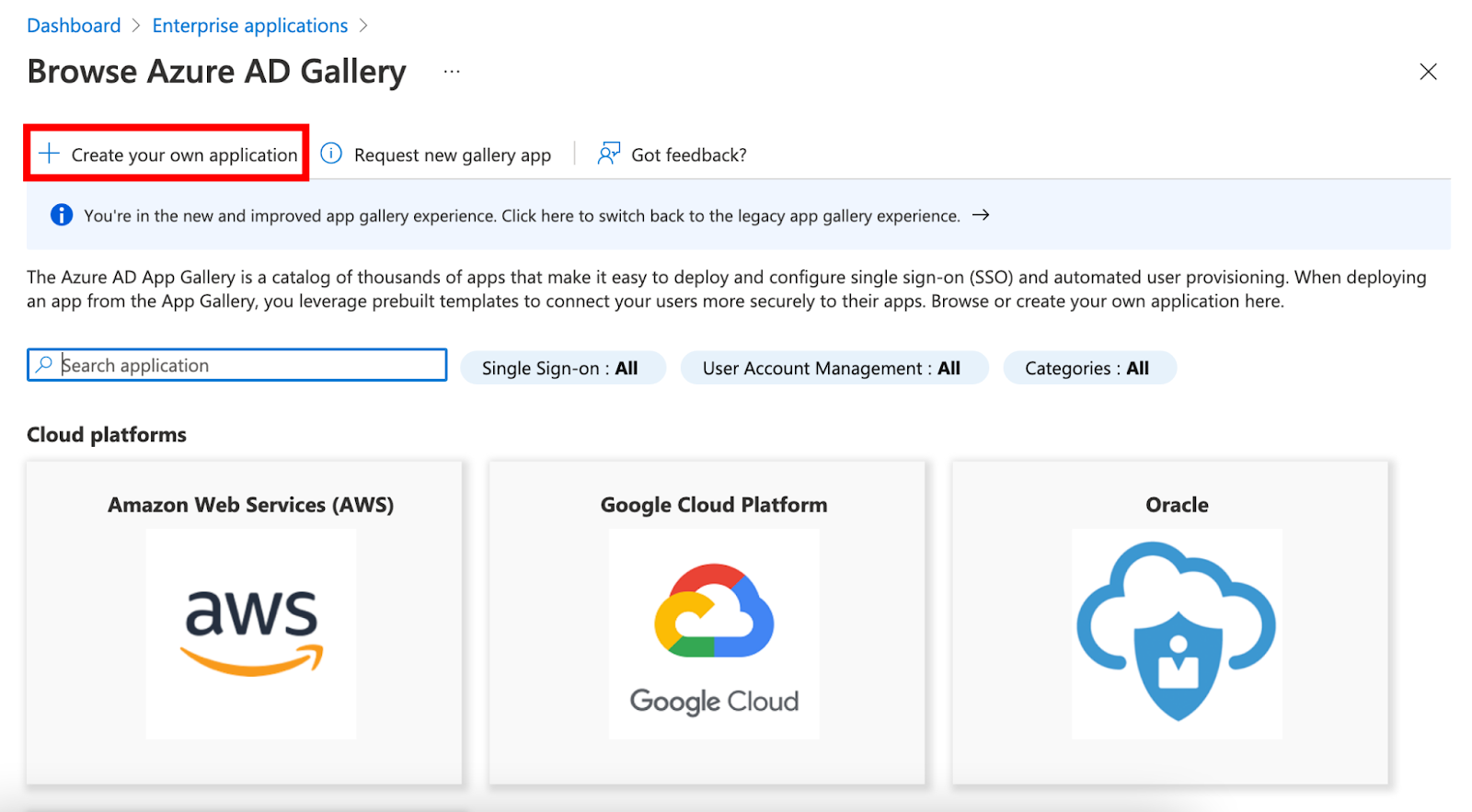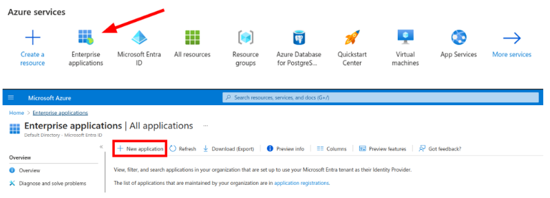 1. Configure an Enterprise application in Azure AD corresponding to CoderPad by clicking Enterprise applications > + New application > + Create your own applications.