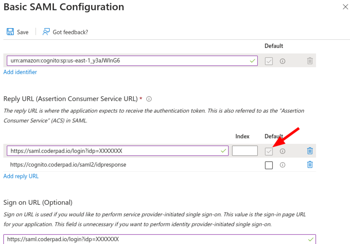- Add 2 Reply URL (Assertion Consumer Service URL):