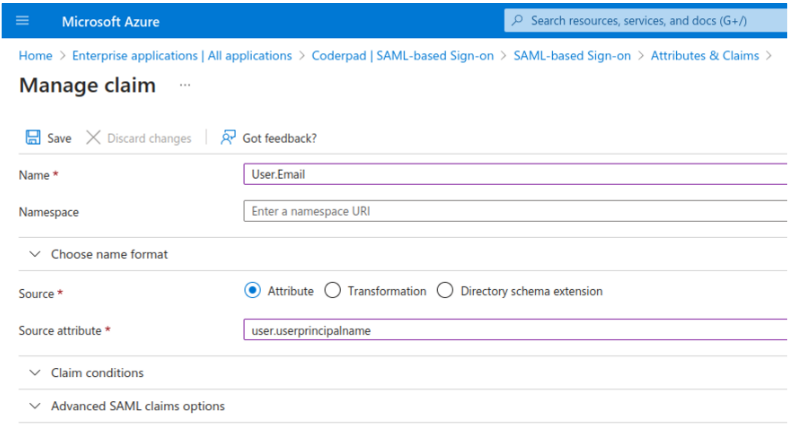 - Source Attribute: user.userprincipalname