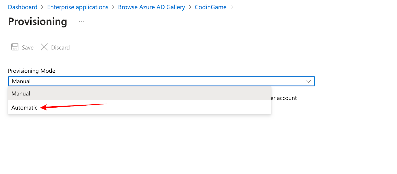 2. Select Automatic provisioning mode