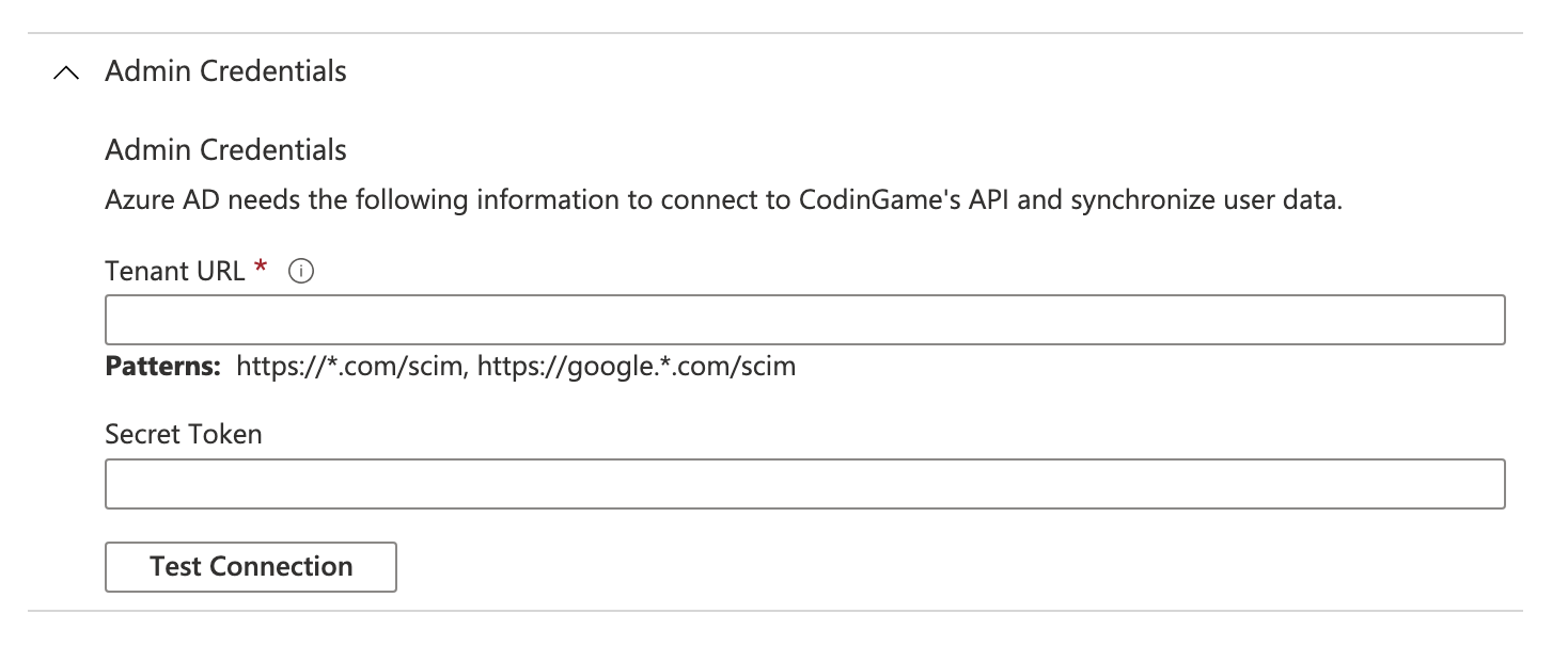 - Tenant URL = SCIM URL