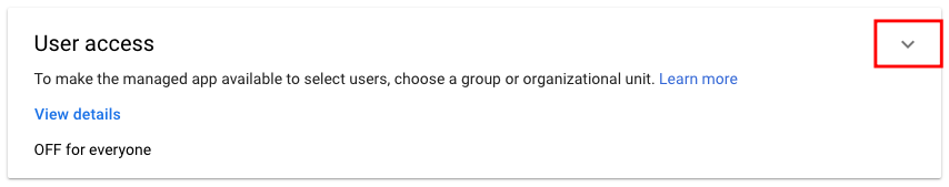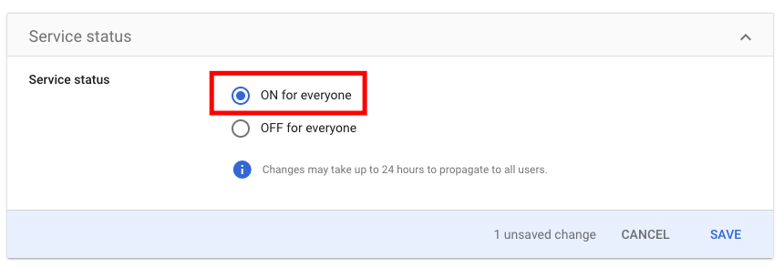 3. Expand the User access panel of the newly created app and activate the service by selecting the ON for everyone option.