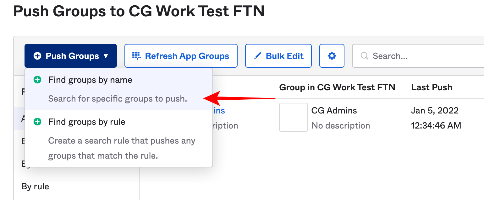9. Click Push groups >Find groups by name