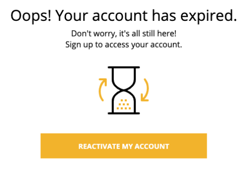 To reactivate your account simply click on the yellow REACTIVATE MY ACCOUNT button and follow the instructions.
