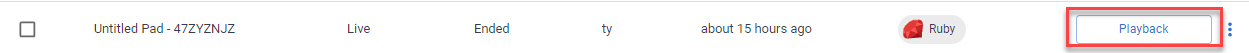This moves the live pad into the Ended status in the dashboard and enables playback mode.