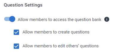 | Allow members to edit others’ questions | Allow members to create questions | Access Level |