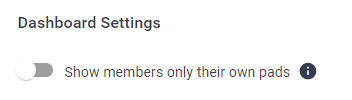 In the Dashboard Settings, you can enable the Show members only their own pads toggle to restrict pad access for members to just those pads that they have created.