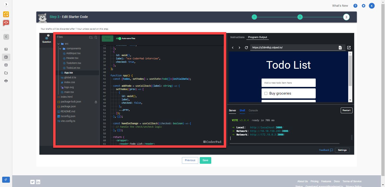 First, create a multi-file question using the question wizard – you can find detailed instructions here. It’s similar to creating a regular question, except you’ll add files, file contents, and folders in the Edit Starter Code screen.