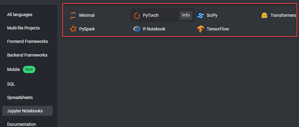 This pad is running a Jupyter instance, built off of the jupyter/pytorch-notebook Docker image provided by Jupyter Docker Stacks. This image includes popular packages from the scientific Python ecosystem, as well as the pytorch machine learning library: