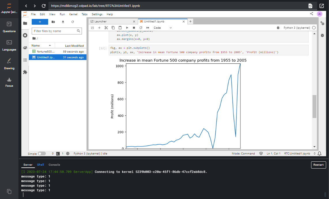 This Pad is running a Jupyter instance, built off of the jupyter/scipy-notebook Docker image provided by Jupyter Docker Stacks. This image includes popular packages from the scientific Python ecosystem: