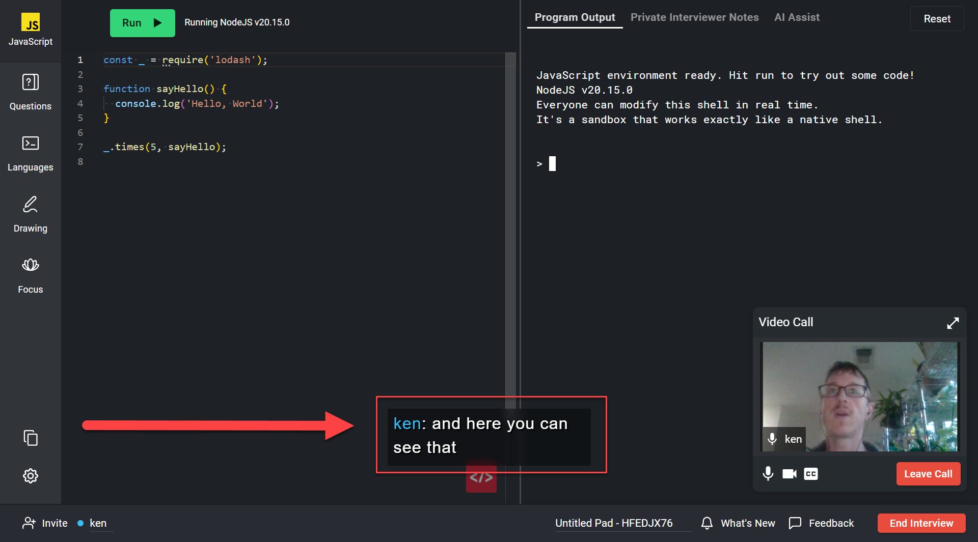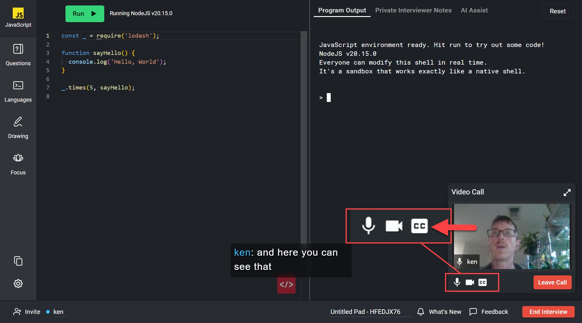 As you talk and the pad participants talk, the transcription feature will record your conversation. Once you’re done the interview, click End Interview to view the playback and see the transcript.