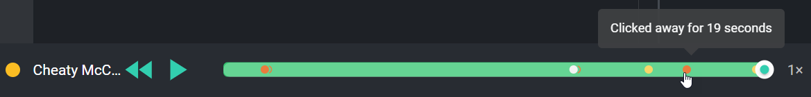 On the playback bar you’ll also see orange dots on where the candidate’s browser is no longer focused on the IDE.