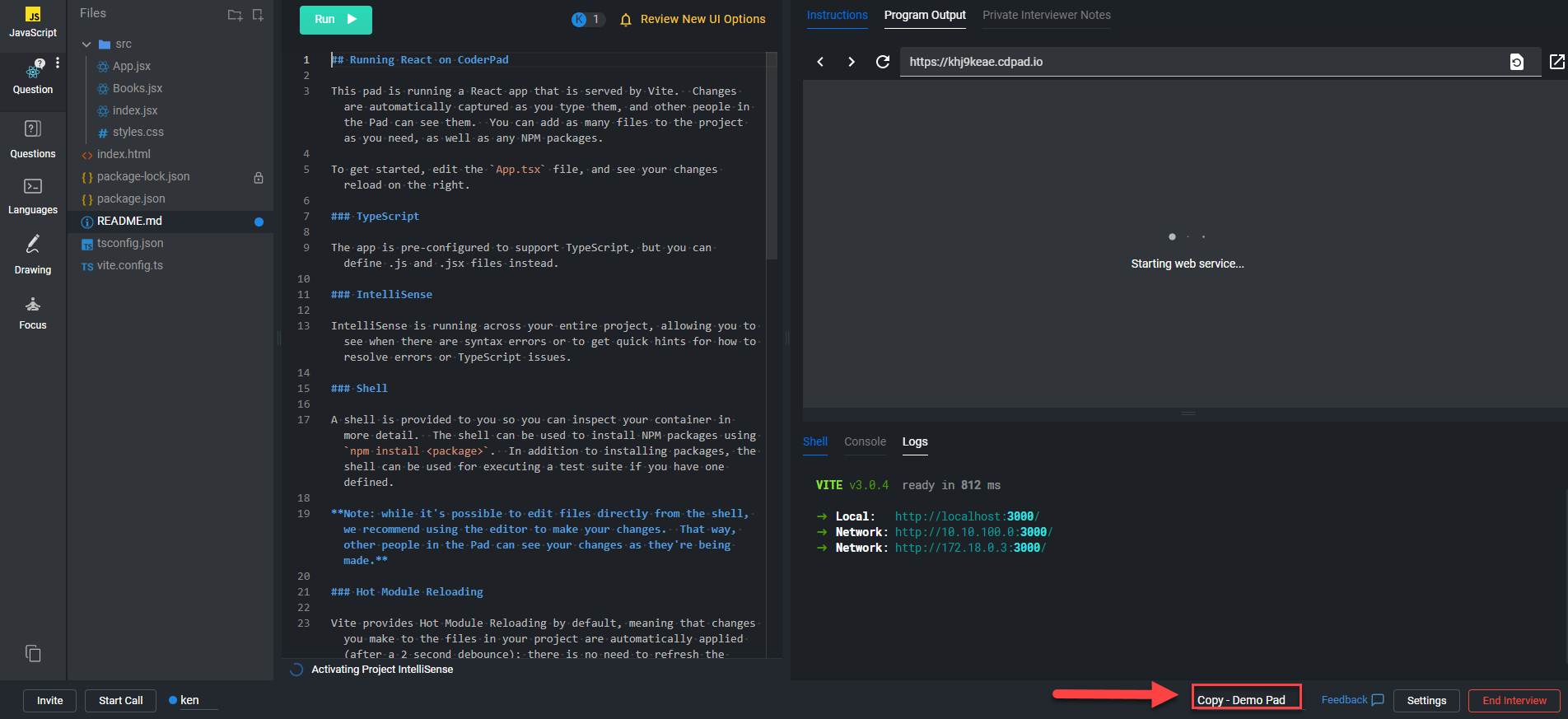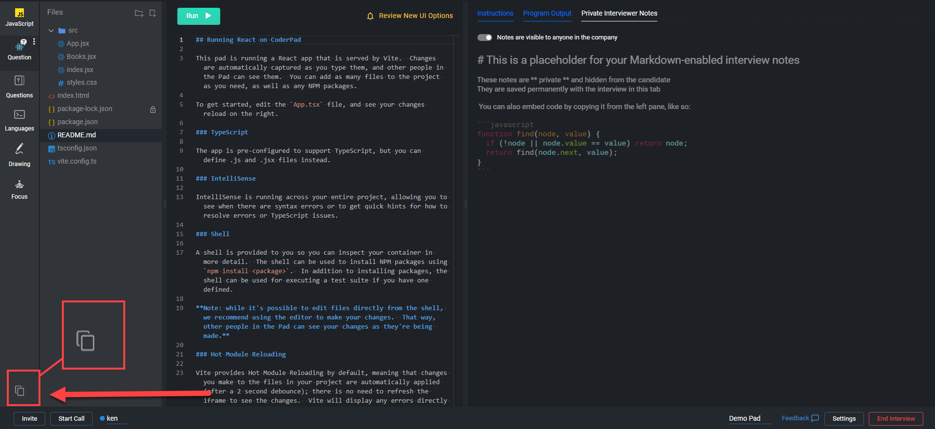 - Interviewers who want to explore a candidate’s solution in a more in-depth manner can duplicate a pad from playback mode so that they can run and write code in a pad to see if the candidate’s solution functions correctly.