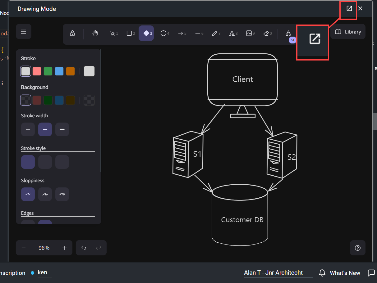 You also have the option to open Drawing Mode in an entirely new window. To do this, click on the icon located in the top right hand corner of Drawing Mode. This is beneficial if you have a larger screen.