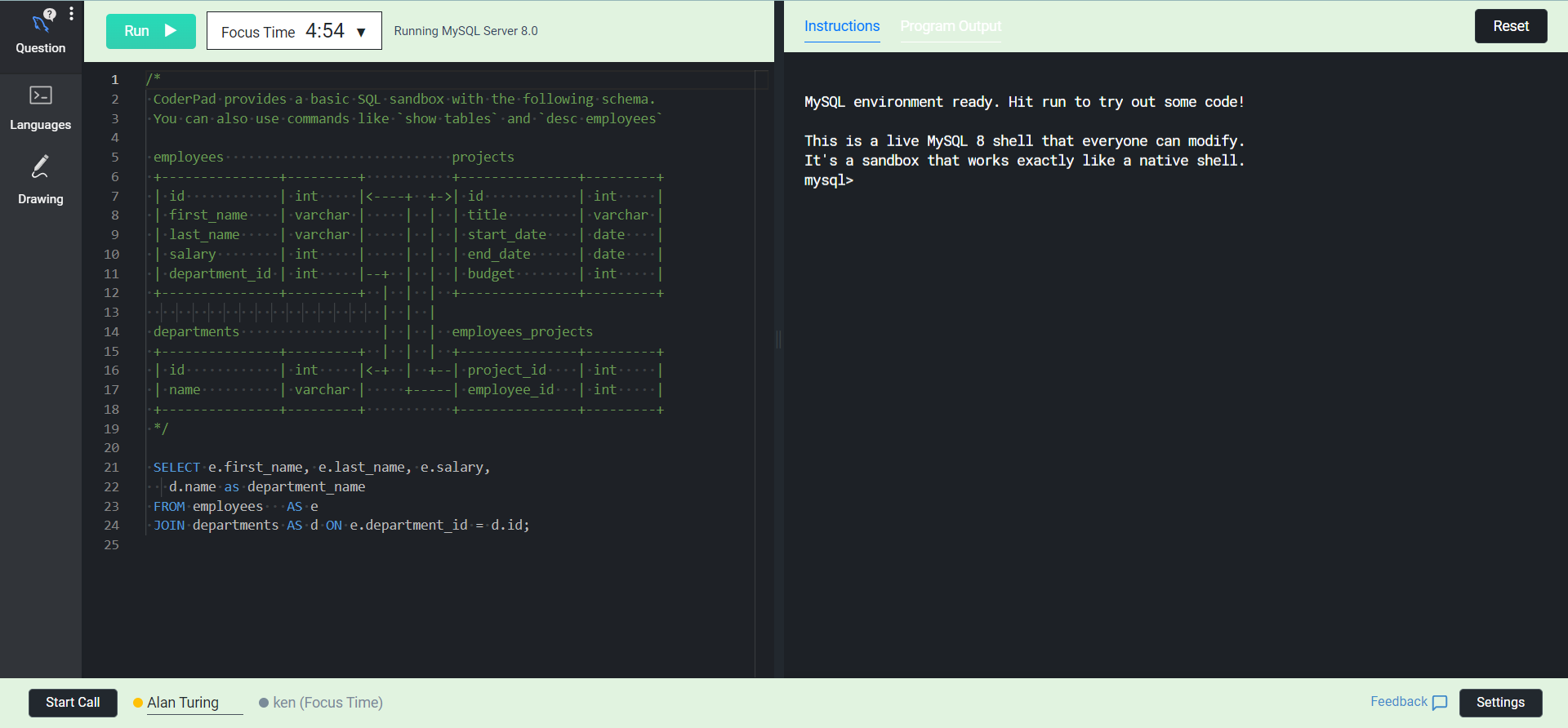 Both the interviewer and candidate see the Focus Time clock counting down.