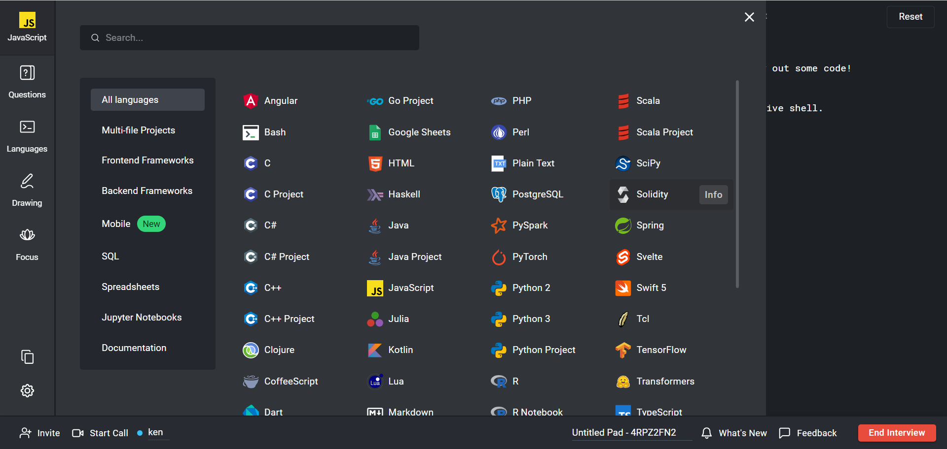 The Interview platform supports a variety of unit testing libraries for different languages.